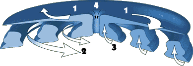 above the surface) sinks into the calm cloud-free eye (4). At the bottom